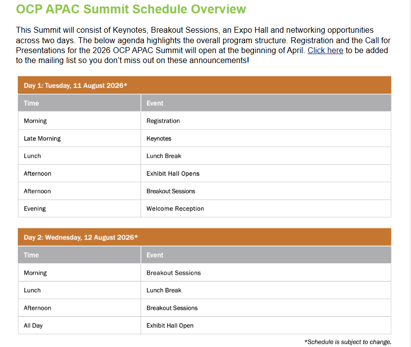 OCP APAC Summit:ocpapacsummit@opencompute.org
